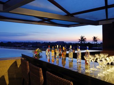 ほぼ貸切で。ルーフトップバーからバリ島の夕焼けを堪能